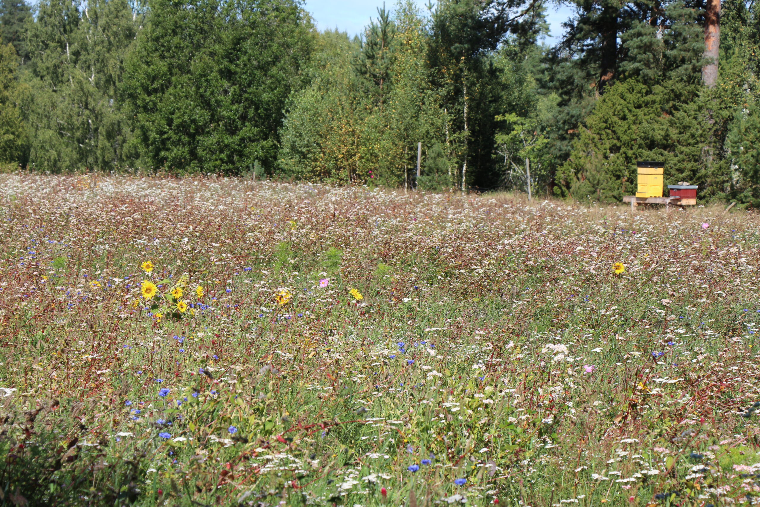 Hur som helst så har bina varit där och hämtat nektar. Honungen , från bina i närheten, innehåller till 37% nektar hämtad från vitklöver och till 37% från honungsörten. (och litet från raps och hallon) Inget från bovete, som också växer där, och ff blommar litet. Konstigt, kan jag tycka.
